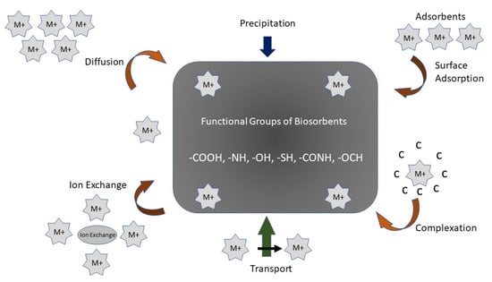 Possible heavy metal adsorption mechanisms.