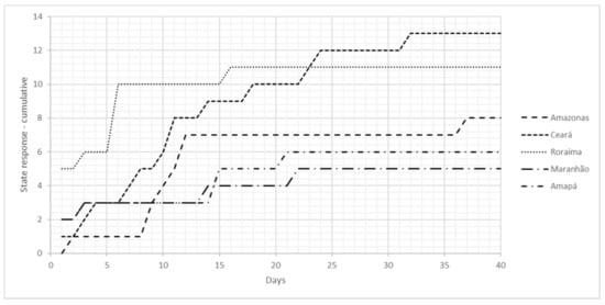 This study followed a qualitative and quantitative exploratory approach with data from a period of 40 days collected from the official Brazilian Ministry of Health website [15], and inventories of policies and regulations from five Brazilian states—Amazonas, Amapá, Ceará, Maranhão, and Roraima—collected from official journals from each state.