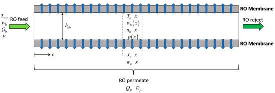 | Qb | Volumetric flow rate in the feed channel of the RO module | m3 s−1 |