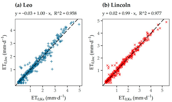 Alternatively values for can be found in the literature (e.g., [51,56,57]). Among climate data, further parameters that should be changed individually are crop height, albedo and the height of humidity and wind measurements. With poor data conditions can also be taken from literature (e.g., [32,58]). Exemplary calculations for are summarized in Table S3. It should be noted that given -values have to be investigated for potential (not actual) ET under reference conditions (well-watered, optimal environmental conditions).
