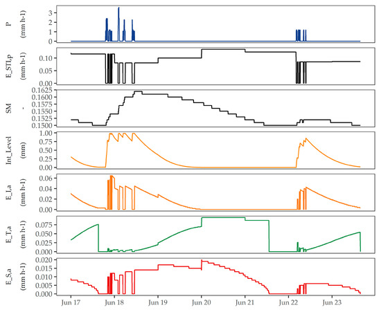 The actual interception height (mm·h−1) is calculated depending on the interception capacity and the remaining interception level of the last timestep ().
