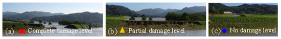 Classification of levee damage level (a) Complete damage level, (b) Partial damage level, (c) No damage level.
