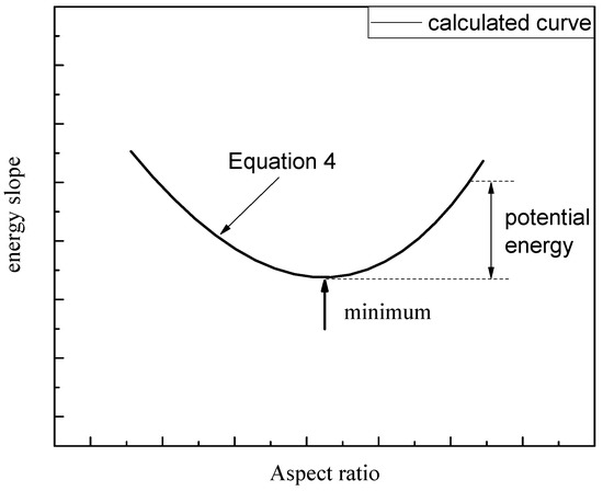 The curve in Figure 3 shows all of the channel geometries that satisfy the equilibrium water and sediment transport with given values of Q and Qs. However, it is still unable to give the fixed solution of the channel in stable state. Therefore, researchers have proposed multiple extremal hypotheses. All of these hypotheses indicate that the channel attains stability at the extreme point of the relationship curve (Figure 3). The extremal hypotheses have been explained through the energy theory [23,24]. This states that the equilibrium condition should satisfy the conditions for equilibrium water and sediment transport. Hence, a channel in equilibrium must provide the kinetic energy that is necessary for water and sediment transport. Except for the point where energy (energy slope) reaches the lowest level (Figure 3), the other points on the curve have potential energy. In any system, the existence of potential energy renders the system unstable; therefore, the channel reaches the equilibrium state only at the extremal point with zero potential energy.
