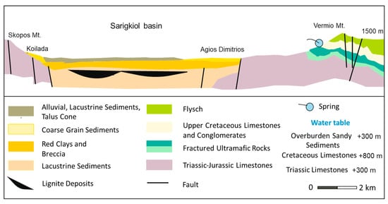 - The deep karstic aquifer of the Triassic‒Jurassic limestones, which form the mountainous boundaries and the basement of the Sarigkiol Basin,