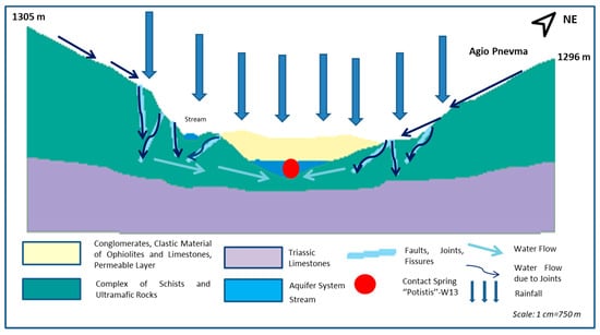 Simplified hydrogeological section of the natural spring “Potistis”‒W13 in western Vermio Mt.