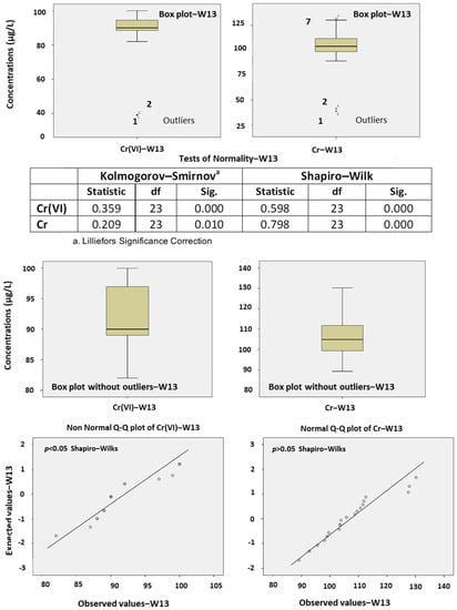 Statistical analyses of concentrations of Cr and Cr(VI) of the natural springs in western Vermio Mt.