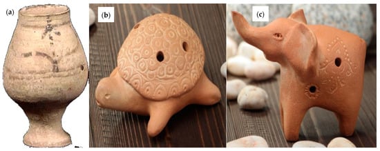 (a) Vegetation artifact (dry climate) and (b) turtle and (c) elephant whistles from humid to wet climates in Mehrgarh (adapted from [8]).