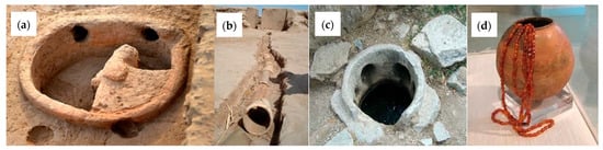 The Mehrgarh and Indus Valley civilizations were known for their water management [39]. They prayed to the rivers every day and gave them a divine position. They had well-constructed wells, tanks, public baths, a wide drinking system, and a city sewage system. Each city had two regions—a higher ground, which contained the “Citadel,” which was the main administrative area, and the lower city, where the houses were situated. All the important areas were situated on the higher ground. The baths and wells were situated there, which suggests the importance they were given [40]. However, in Neolithic Mehrgarh, the water wells, as well as water tanks, seem to be on one side of the village or constructive area. There is no evidence of individual wells, water tanks, or storage systems. The main drain seems to be around the constructed area with some link drains from the houses. No doubt, the water management system of the Mehrgarh civilization was not well developed, but it provides a clue for the promotion of water technology for the future (Figure 13).