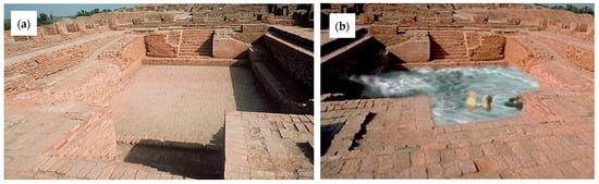 Great bath at Moen-Jo-Daro: (a) Empty view and (b) with water (adapted from [33]).
