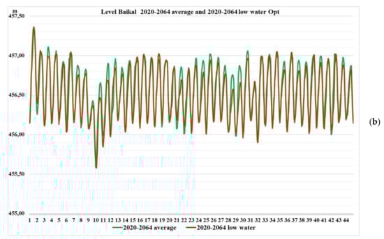 The historical time series of the inflow from 1903 to 2020 were taken from the site of the Yenisei Basin Administration (http://pivr.enbvu.ru assessed on 24 October 2013), from the section “Rules for the use of water resources of the reservoirs water resources of the Angarsk HPP cascade (Irkutsk and Lake Baikal, Bratsk and Ust-Ilimsk)”, file “Explanatory note to the draft rules for the use of the Irkutsk reservoir water resources and Lake Baikal”, “Natural average ten-day (V-IX) and average monthly water discharges, seasonal and annual volumes of useful inflow into the Lake Baikal for 1903/04/2012/13”. Actual water user requirements for 2013 were taken from the same file. The inflow data have been updated until 2020 from the RusHydro website (http://www.rushydro.ru/hydrology/informer/ accessed on 11 September 2013).