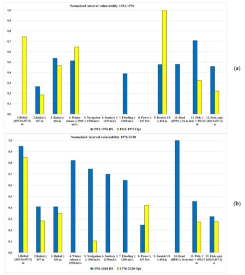 Interval vulnerability when WRC use DS and optimization (series 1976–2020) for criteria 1, 2, 3, 9, 10, 11, 12 (a) for criteria 4, 5, 6, 7, 8, (b).