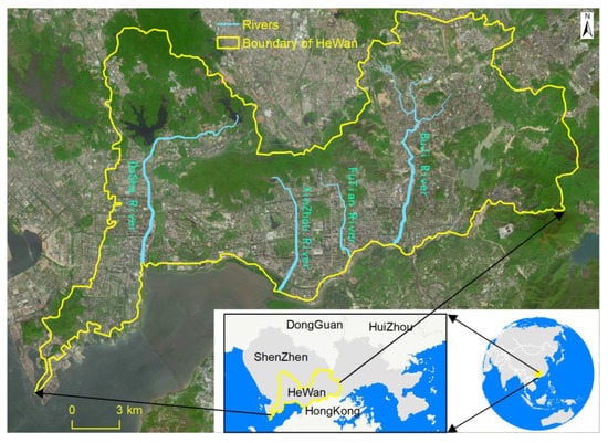 The typically rainy city of Shenzhen in China, with four urban rivers, is selected as the study area [31], this city has complete hydrological infrastructure and observation information systems. Shenzhen, located in the southeast coast of China, has the most rapid urbanization of any city in China with high urban flood risk caused by extreme rainfall. Shenzhen city ranks fifth among the 136 coastal cities in the world in terms of future flood loss risk [32]. Shenzhen city is a typical case study area, in which the spatial and temporal variations in rainfall is wide with rapid movement and obvious “squall line” [33]. Additionally, urban hydrological datasets are sufficient in Shenzhen, which is the benefit from a 30 million RMB project of building an urban flood model, which began in 2018. These datasets include underground pipe network data (nearly 3000 km), 1:1000 terrain data, 13 years of rainfall monitoring data, historical water level data, reservoir operation data, and more.
