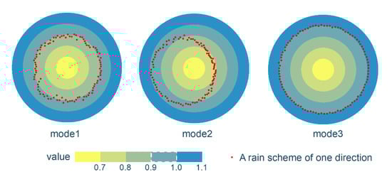 In this paper, different r values are calculated, and the initial values of different cluster centers are selected for the k-means cluster analysis. Then, the rainstorms are divided into 3 modes. The mean value of each rainstorm is taken as a typical rainstorm mode.