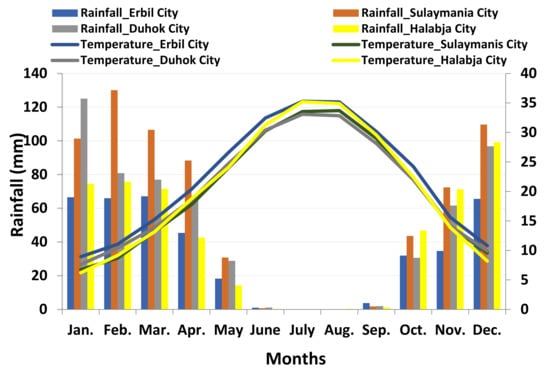 | Halabja City | Rainfall (mm) | 74.6 | 75.7 | 71.5 | 42.7 | 14.3 | 0.3 | 0 | 0.4 | 1.1 | 46.7 | 71.3 | 99.2 |