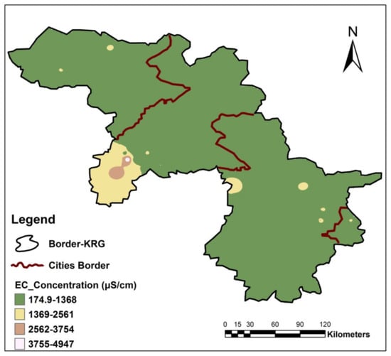 | <1500 | Excellent | This water has a relatively low level of salinity and should present no serious burden to any livestock or poultry | Erbil City 286–5090 (µS/cm)  |