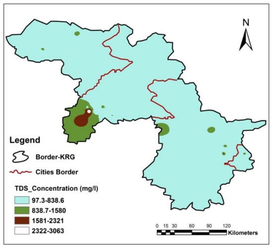 | 500–1000 | Used for irrigation but causes harmful effects on crops sensitive to salinity | Sulaymania City 87–2139 mg/L  |