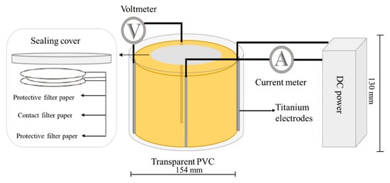 The design of the test device is shown in Figure 1 and consists of four main parts: test electrode, measurement meter and power supply, specimen container, and filter paper.