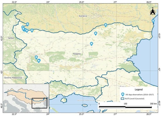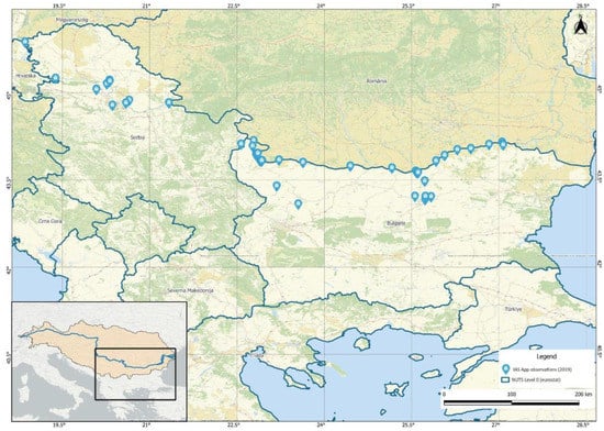The study area covered the Lower Danube Region—Bulgaria, Romania and Serbia. The information campaigns and meetings with stakeholders were held in all three countries, while the reporting of species using the IASapp was mainly performed in Bulgaria.
