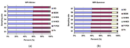 The weight of each parameter to the WPI values recorded in winter (a) and summer (b).