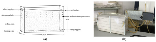 The combined forms of open-ditch with subsurface drainage systems have been applied in China and Japan [,]. The traditional combined drainage forms of open-ditch and conventional subsurface drainage are mainly laid out in the form of orthogonal angles; a parallel arrangement is adopted in this study. The discharge of surface water directly into an open ditch is easy to be estimated. Mostly, the open ditch is widely used for removing the surface water. However, the effect of surface ponding water infiltrating into soil and seepage through the open ditch is often overlooked. Additionally, there are no mature results on the effect of conventional subsurface drainage in assisting other drainage measures to remove surface water. Thus, this field should be further studied. The current research focuses on south China, where the flooding and waterlogging often occur alternately, the groundwater level is high, and the single drainage forms cannot meet the requirement of farmland drainage, therefore combined drainage should be further studied and applied. In this study, a simulated indoor drainage test was conducted to explore the effect and feasibility of various combined drainage forms in accelerating the infiltration of ponding water and drainage through subsurface drainage systems, and we provide technical support for the application of combined drainage forms in farmland flooding and waterlogging removal.