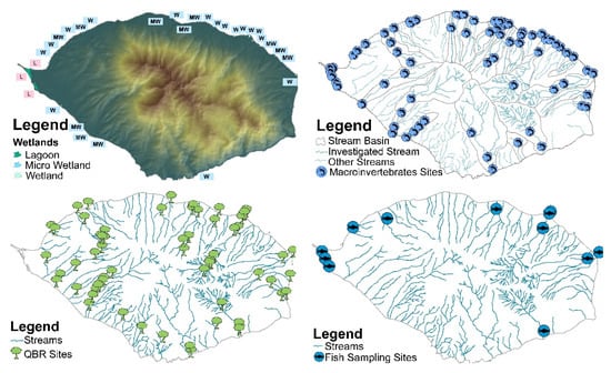 - Skoulikidis, Ν.; Lampou, A.; Karaouzas, Ι.; Gritzalis, K.; Lazaridou, M.; Zogaris, S. Stream ecological assessment on an Aegean island: Insights from an exploratory application on Samothraki (Greece). Fresenius Environ. Bull. 2014, 23, 1173–1182. [Google Scholar]