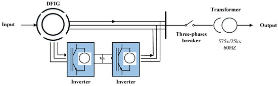 The wind power system mainly comprises the wind turbine, the double-fed induction generator (DFIG), the mechanical drive shaft system, and related control systems. The structural diagram of the wind power system is shown in Figure 4.