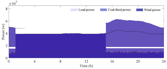 The comprehensive evaluation is based on the time scale of hours, and the total calculated time is 24 h. Figure 10 shows the hourly variety rules with respect to the coal-fired power, wind power, and load demand. The working principle of this power station is concluded as: (i) The coal-fired system undertakes 85% load demand without unit shutdown, and it should operate between the maximum and minimum output power (as mentioned in Table 1), and (ii) The residual 15% of load demand is assigned to the wind and hydropower generation system, where the hydropower sector stop the electricity service if the wind power is enough.