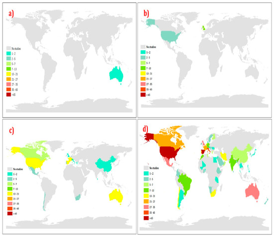 - Concerning the program used to respond to goals O1 and O3, the most significant limitation involved the visualisation and interpretation of the results shown in Figure 3. This figure shows the countries where research on aquifer recharge and climate change has already been undertaken; nevertheless, the program shows all countries, which may confuse the reader. The program does not show the specific aquifer or the exact region studied, but only shows all countries;