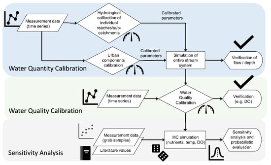 Stream water quality is characterized by high spatio-temporal variability, and associated models are often applied in data-scarce environments [26]. These variations stem, for example, from variations in landscape characteristics and catchment topography in the spatial dimension [18], whereas changes in environmental conditions coupled to variations in the source, active pathways, and related processes will influence the temporal variability at hourly, daily, and seasonal scales [14]. Notably, considering these variations and related uncertainty in any model output may ultimately become crucial, especially if the model results are used in any kind of decision-making process [65].