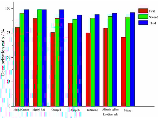 - Cui, D.; Zhang, H.; He, R.; Zhao, M. The Comparative Study on the Rapid Decolorization of Azo, Anthraquinone and Triphenylmethane Dyes by Anaerobic Sludge. Int. J. Environ. Res. Public Health 2016, 13, 1053. [Google Scholar] [CrossRef] [PubMed]