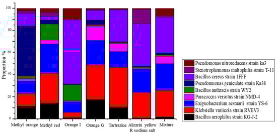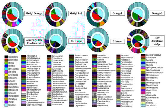 3.2. Cultured Bacterial Composition of Azo Dye in Acclimatized Sludge