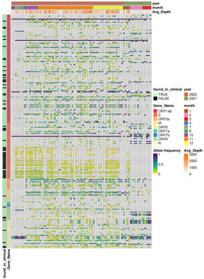 Statistical analysis of the samples and mutations was performed in R v4.0.3, including utilization of the following packages: tidyverse v1.3.10, here v1.0.1, ISOweek v0.6–2, lubridate v1.7.10, RColorBrewer v1.1–2, viridis v0.5.1, ComplexHeatmap v2.6.2 and readxl v1.3.1.