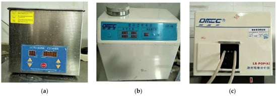 The particle size distribution was measured by a laser particle analyzer (LS-POP6), manufactured by OMEC. Three key parts were used during the testing, including ultrasonic washing unit, sample loading unit and the testing unit, as shown in Figure 3.