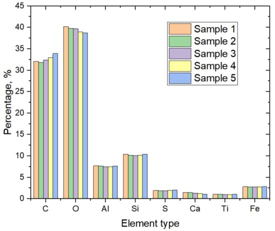 For underground coal slurry, the physical properties change significantly from one mine site to another [22]. It is essential to understand the coal slurry’s chemical compositions for the chosen of flocculent. Five coal powder samples were collected and the chemical compositions were tested by the XRF spectrum analyzer (XRF-1800 series).