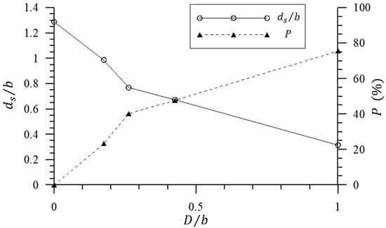 | P | the percentages in maximum scour depth reduction ratio at pier; |