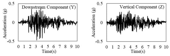 - Wang, J.-T.; Lv, D.-D.; Jin, F.; Zhang, C.-H. Earthquake damage analysis of arch dams considering dam–water–foundation interaction. Soil Dyn. Earthq. Eng. 2013, 49, 64–74. [Google Scholar] [CrossRef]