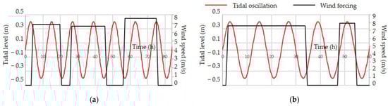 Wind and tidal forcings: (a) Bora events superimposed to tidal oscillations; (b) Sirocco events superimposed to tidal oscillations.