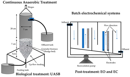 - Katsoni, A.; Mantzavinos, D.; Diamadopoulos, E. Coupling digestion in a pilot-scale UASB reactor and electrochemical oxidation over BDD anode to treat diluted cheese whey. Environ. Sci. Pollut. Res. 2014, 21, 12170–12181. [Google Scholar] [CrossRef] [PubMed]