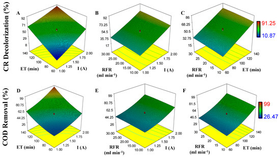 3.2.2. CR Decolorization and COD Removal in EC Process