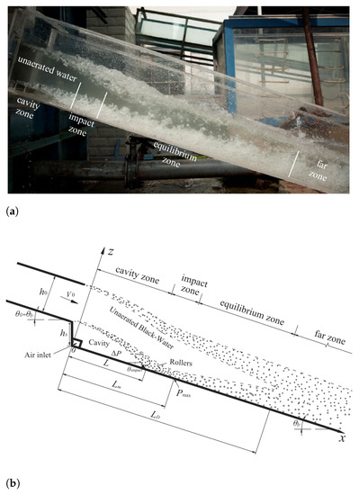 The rectangular channel is 5 m long and m wide (Figure 1a). The aerator offset height (hs) varies from m to m. The upstream emergence angle (θ0) inclination is variable from 0° to ° and the channel bottom angle (θb) ranges from ° to °. The channel bed and side-walls are made of smooth polyethylene with a roughness height of m.