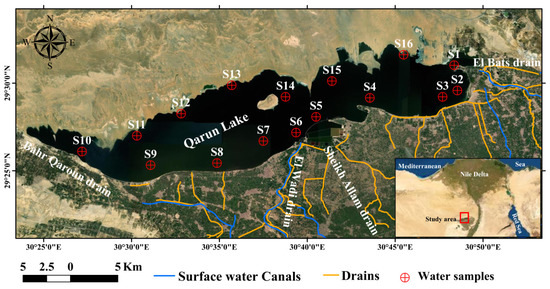 Shallow lakes are necessary ecological and socio-economic resources worldwide. However, human activities have caused deterioration for the ecological status of sallow lakes in many regions of the world. Thus, there is a crucial interest in the precise evaluation and careful monitoring of ecological status in shallow lakes [11]. Multiple contamination sources are observed along the lake’s southern shore, comprising agricultural and industrial wastewater flows from the El-Fayoum region, as well as fisheries [12,13,14].