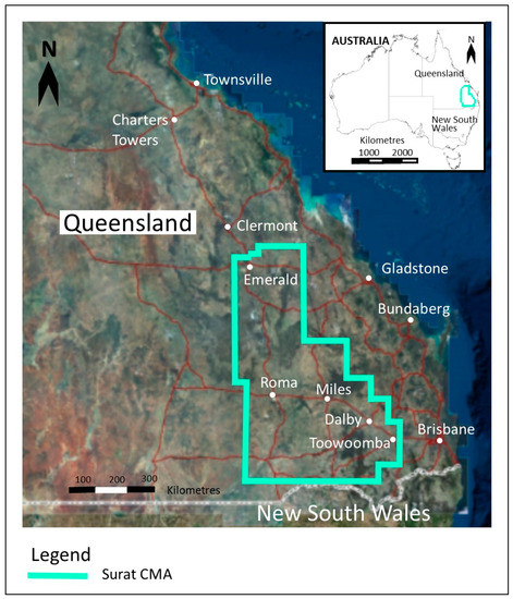 - Queensland Government; Business Queensland. Technical Reports for the Surat CMA. Available online: https://www.business.qld.gov.au/industries/mining-energy-water/resources/landholders/csg/surat-cma/technical-reports (accessed on 1 October 2021).