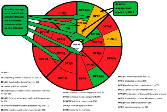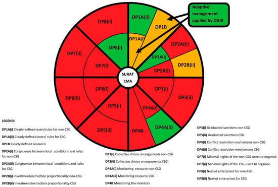 DP3—Collective choice arrangements—Consultation of already drafted rules rather than participation occurs in respect of formulation of the rules around extraction, for both non-CSG extraction as well as CSG extraction in the Surat CMA. Therefore, this part of the heatmap is shaded red (DP3(i) and (ii)).