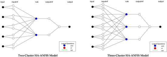 Figure 6. Model architectures of the developed HA-ANFIS models.