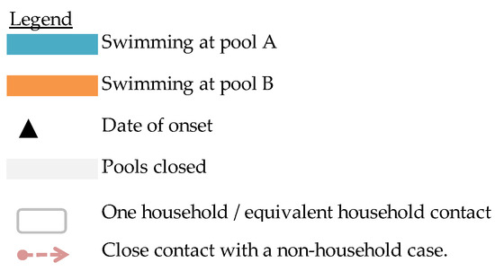 In some households, the case with the earliest onset and with pool exposure was not confirmed, but subsequent symptomatic cases were. This is expected, as public and health professional awareness of a situation increases and subsequent cases may be more likely to attend healthcare and submit a sample.