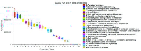 PICRUSt function abundance spectrum in the COG database. The X-axis represents the secondary function number of COG, and Y-axis represents the functional abundance.