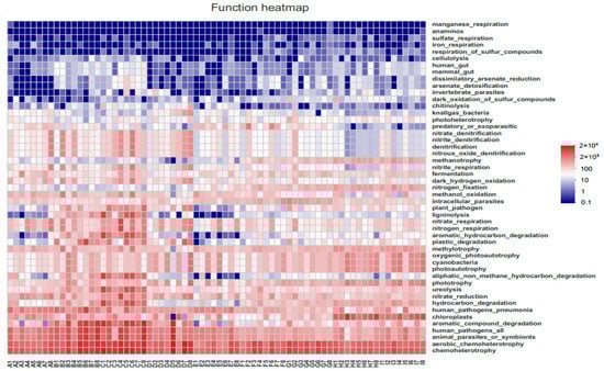 Heatmap of FAPROTAX function prediction. The X-axis is the sample name, and the Y-axis is the functional name. The abundance changes of different functions in the sample are shown by the color gradient of color blocks.