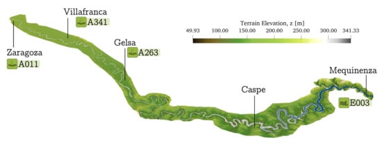 River measurements are available at http://www.saihebro.com/saihebro/index.php?url=/datos/mapas/tipoestacion:A; accessed on 20 October 2021.