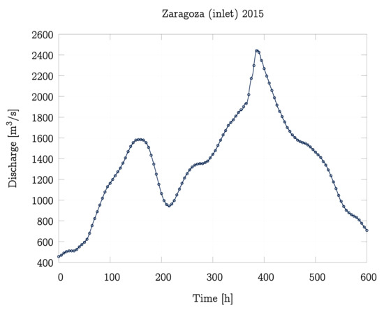 Inlet hydrograph for the Ebro River flood event in 2015 in Zaragoza (A011).