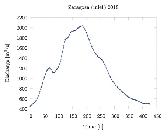 Inlet hydrographs for the Ebro River flood event in 2018 in Zaragoza (A011).